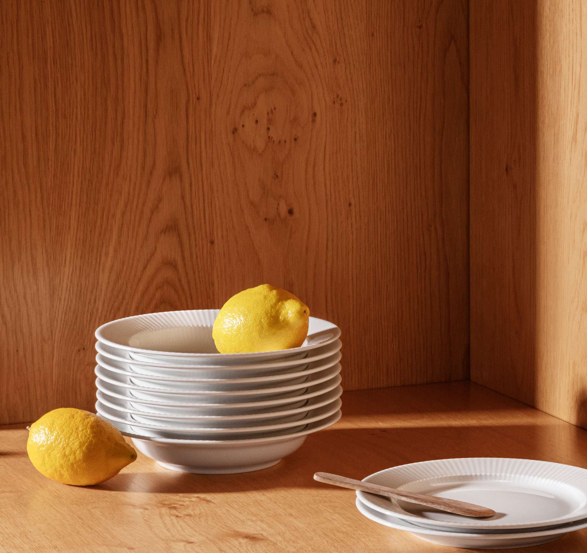 Legio Nova tallerkner findes som kage-, frokost- og dyb tallerken, middagstallerkner i to størrelser og ovale tallerkner, samt en lang række andre porcelænsprodukter til bordet. Se hele udvalget her.