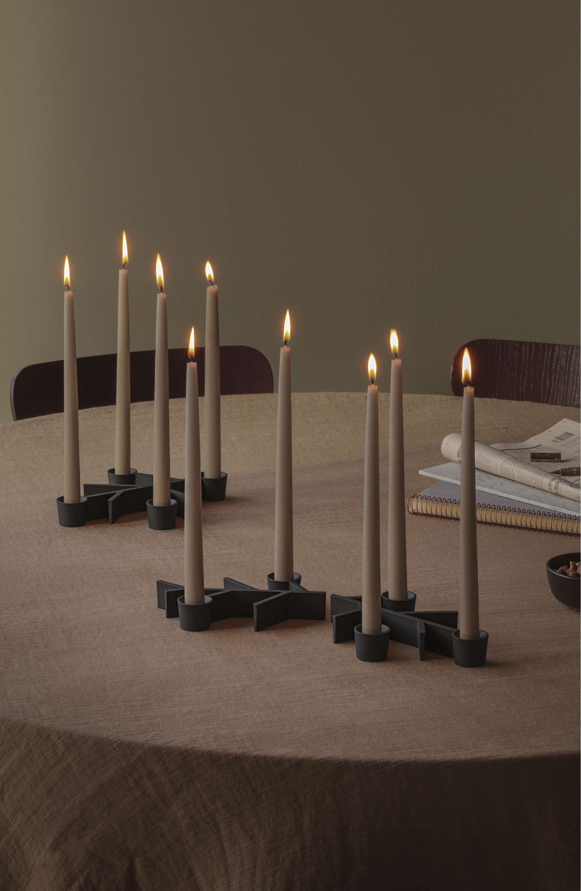 Lad Twig lysestagerne sætte stemningen. Hver stage står som en lille skulptur, der fortæller historien om mødet mellem naturens forgreninger og geometriens skarpe linjer. Lysestagerne fås i tre størrelser med plads til to, tre eller fire lys. De står smukt hver for sig, men trives allerbedst i selskab. Flyt rundt, kombiner og skab dine egne opsætninger. Fremstillet i støbt aluminium med en mat overflade.