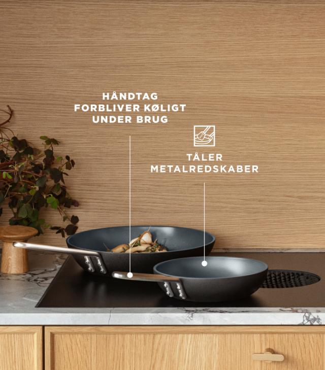 Professional giver dig usædvanligt præcis kontrol over varmen. Den kraftige konstruktion og aluminiumskernen fordeler varmen hurtigt og jævnt fra bund til kant og holder temperaturen stabil - også når kolde råvarer lægges på panden. Resultatet er en mere ensartet stegning, bedre stegeskorpe og færre ujævnheder undervejs.