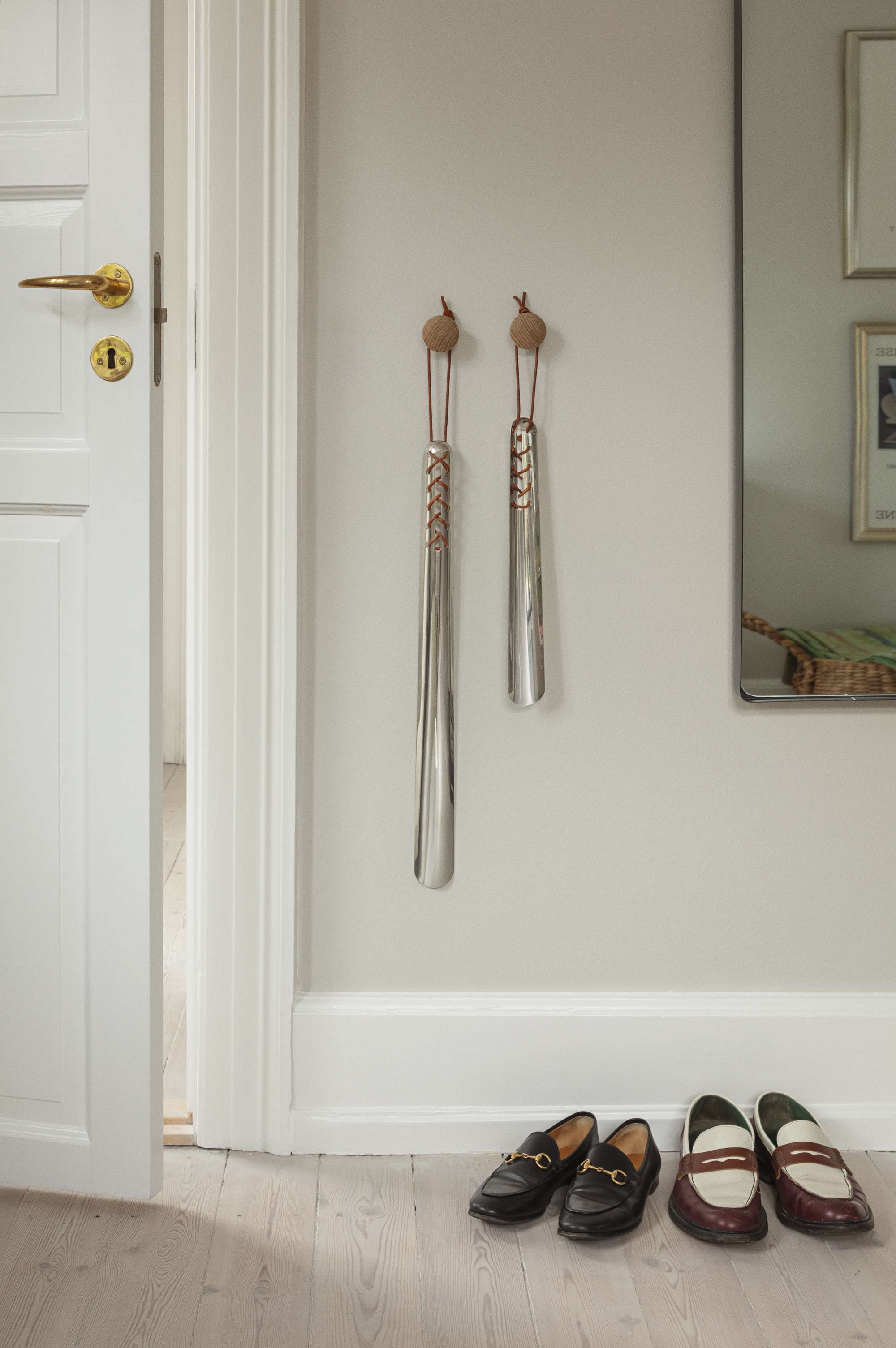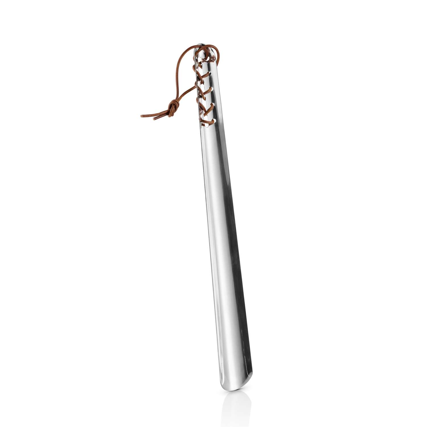 Schuhe leicht anziehen, ohne die Hinterkappe zu knicken oder zu viel Kraft aufwenden zu müssen. Der 55 cm lange Edelstahl-Schuhlöffel ist ein praktischer, platzsparender Helfer im Alltag. Er liegt gut in der Hand und man kommt schnell los. Dank des Lederriemens kann man ihn im Eingangsbereich, in der Garderobe oder im Schrank aufhängen und so ist er stets zur Hand. Schlichtes und elegantes Design. In zwei Längen erhältlich.