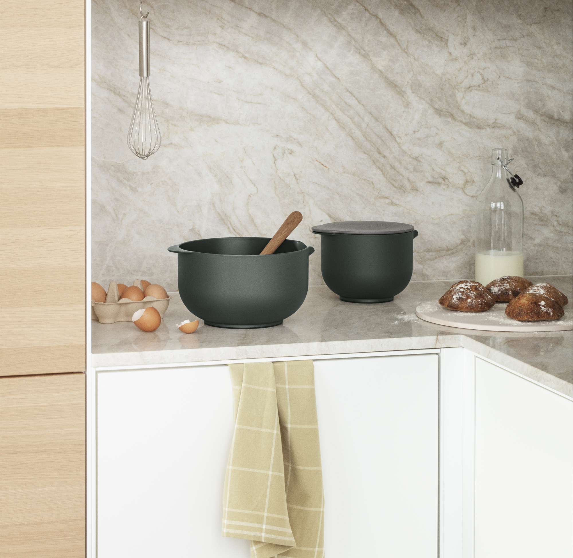 The bowls are made in Denmark from an exceptional durable plastic that withstands everyday use. The bowls are microwave-safe, freezer-safe and dishwasher-safe and can be accessorised with matching lids to perfect them for storage.