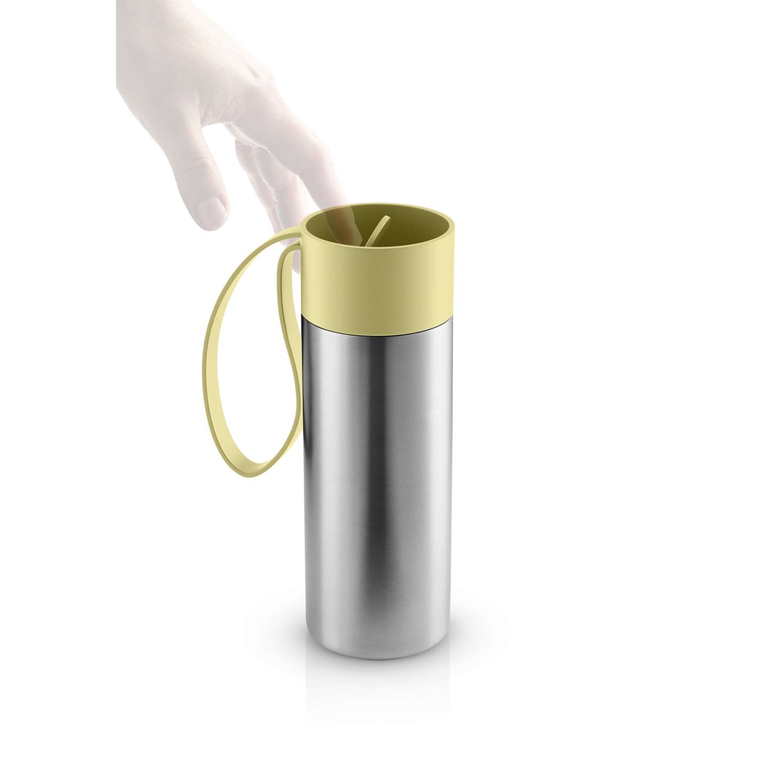 The practical thermo To Go Cup can be taken everywhere. The lid is easy to open and close on the move thanks to the functional lid with its click feature for easy one-handed operation. Fill the To Go Cup with a hot beverage of your choice – the cup keeps contents hot for up to 6 hours or cold for up to 12 hours thanks to the double-walled vacuum effect. The practical silicone carry strap makes it easy to grab the cup for refreshment on hand at any time. 5-year warranty against manufacturing defects.