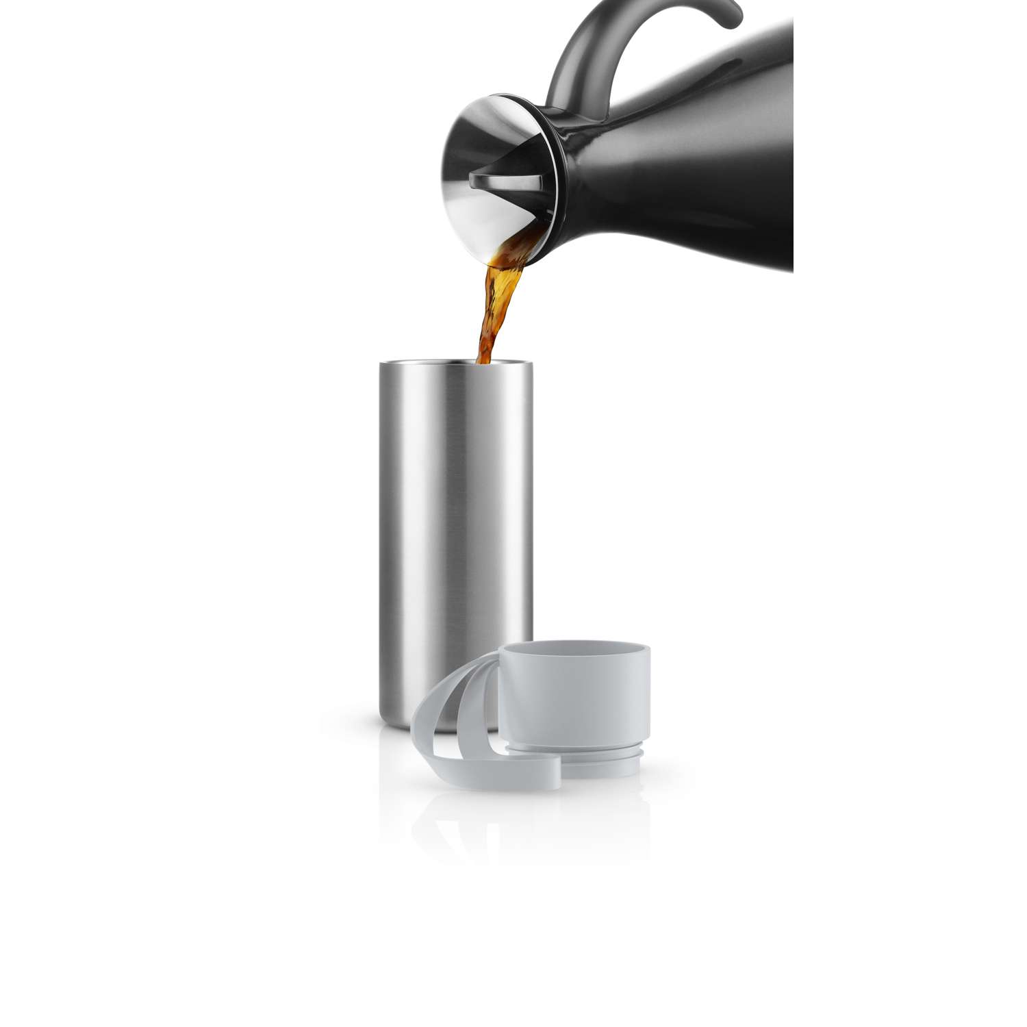 The practical thermo To Go Cup can be taken everywhere. The lid is easy to open and close on the move thanks to the functional lid with its click feature for easy one-handed operation. Fill the To Go Cup with a hot beverage of your choice – the cup keeps contents hot for up to 6 hours or cold for up to 12 hours thanks to the double-walled vacuum effect. The practical silicone carry strap makes it easy to grab the cup for refreshment on hand at any time. 5-year warranty against manufacturing defects.