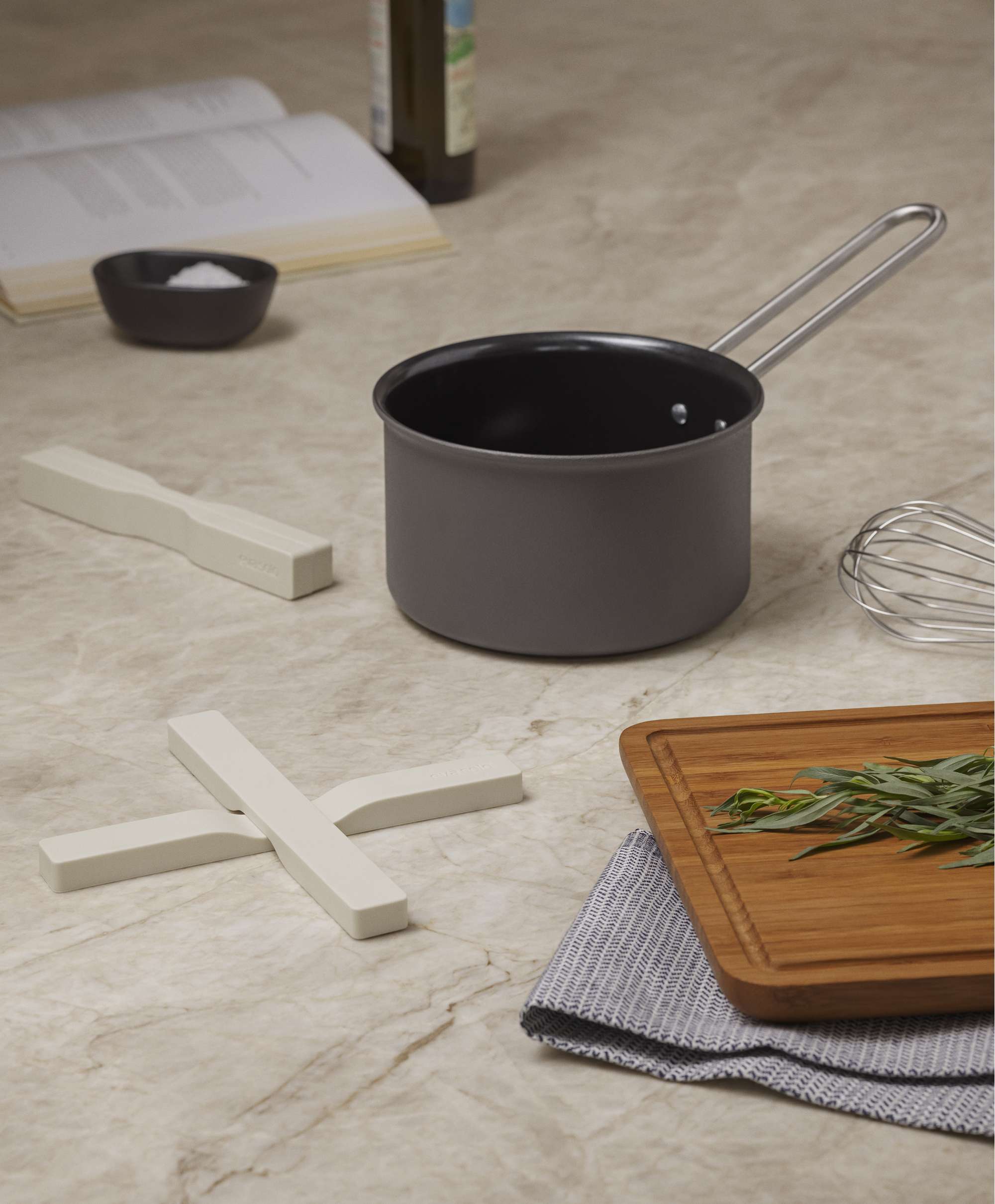 Ce dessous-de-plat aimanté forme une croix où poser petites casseroles ou plats, ou se sépare en deux pour accommoder une marmite ou un plat à rôtir. Grâce à ses aimants intégrés, le dessous de plat se déplace avec la casserole autour de la table. Pour le ranger, il suffit de le replier sur lui-même, ce qui vous fait gagner de la place dans le tiroir de la cuisine. Fabriqué en silicone résistant à la chaleur, ce dessous-de-plat protégera efficacement n’importe quelle surface. Il passe au lave-vaisselle.