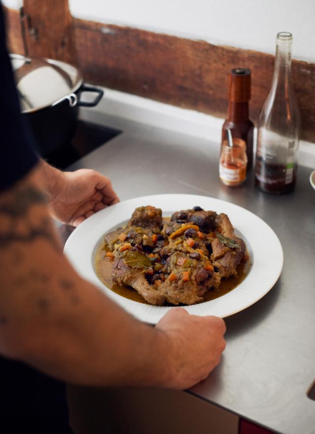 This flavourful dish is sublime on a dark winter’s eve. It requires a decent pot – preferably a cast iron pot as this distributes the heat evenly and ensures the duck won’t burn.
