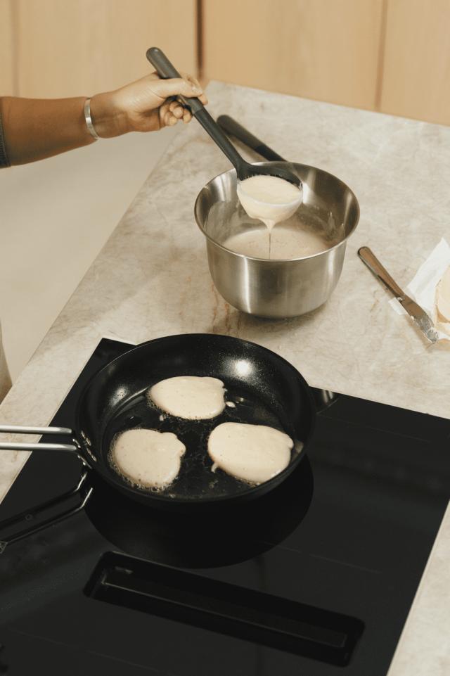 - Smelt smør i en stekepanne og stek pannekakene til de er gylne på begge sider.