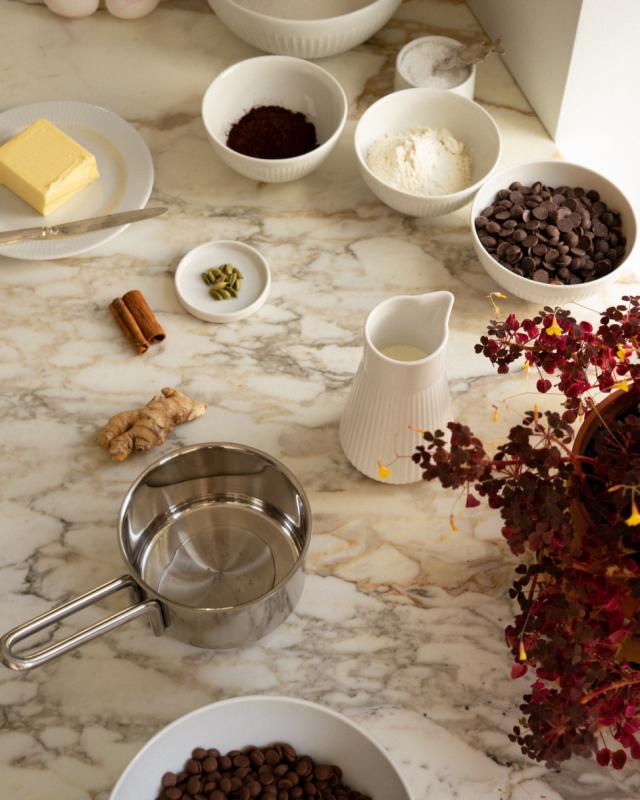 Chocolate cake with ganacheCopenhagen cool kid and cake enthusiast Kh Anton Bruusgaard, stepped into the kitchen to create three little masterpieces of Sweet Delicacies for Eva Solo. His cakes, petite as well as the more generous in size, really come into their own when presented on Eva Solo Legio Nova. The white serving dishes add a sophisticated and clean touch to Anton’s little slices of sugary heaven.