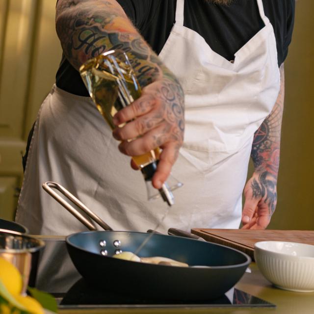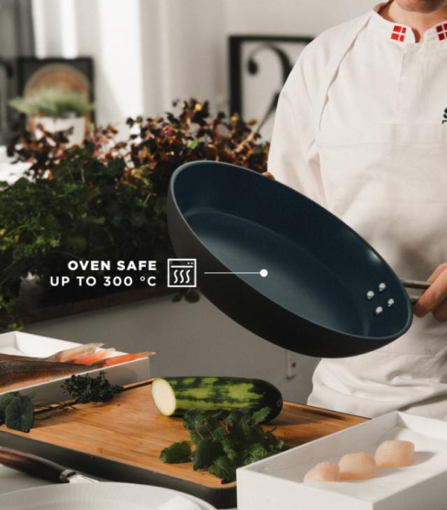 Professional er vår mest kompromissløse stekepanne til nå. Den ekstra kraftige konstruksjonen med en kjerne av 100 % resirkulert aluminium sikrer suveren varmekontroll, mens Slip-Let® Laser Titanium-overflaten gir deg noe som sjelden finnes i én og samme panne: enestående slippeevne og ekte holdbarhet. PFAS-fri, klar for metallredskaper, ovnssikker opptil 300 °C og tåler oppvaskmaskin.